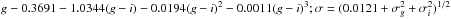 = | VT − 0.0036 + 0.655(BT − VT) − 0.0429(BT − VT)2;σ = σBT | |