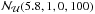 denotes a Normal distribution with a mean of μ, a width of σ2, and limited by a Uniform distribution between a and b;