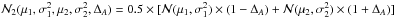 denotes a Bi-Normal distribution with means of μ1 and μ2, widths of