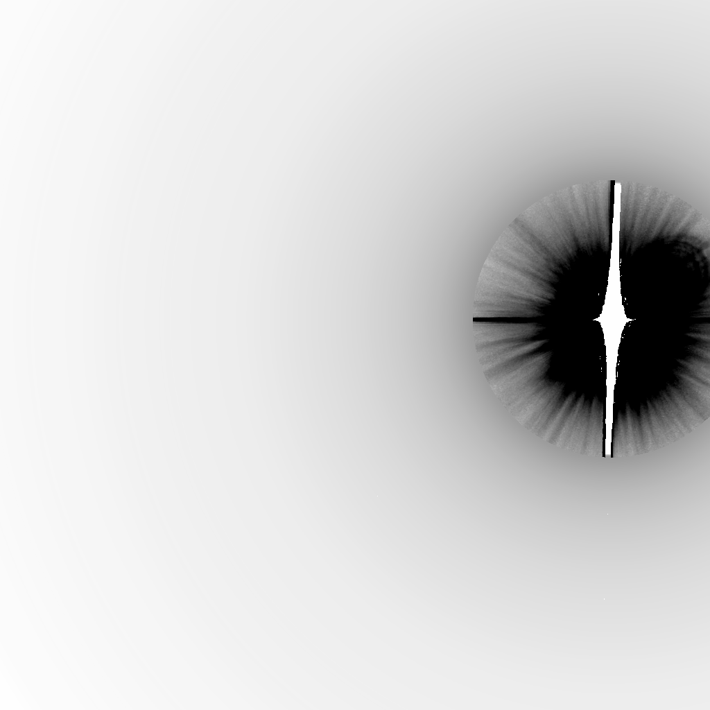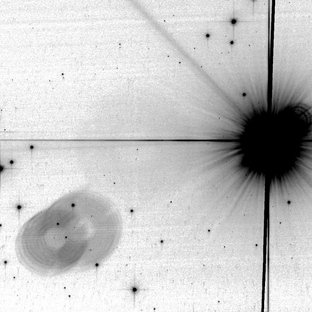 Image of the PSF star HD 68111 (PSF-Blue) in the F606W+POL0V polarizing filter setup (left) and the derived composite synthetic PSF (right).