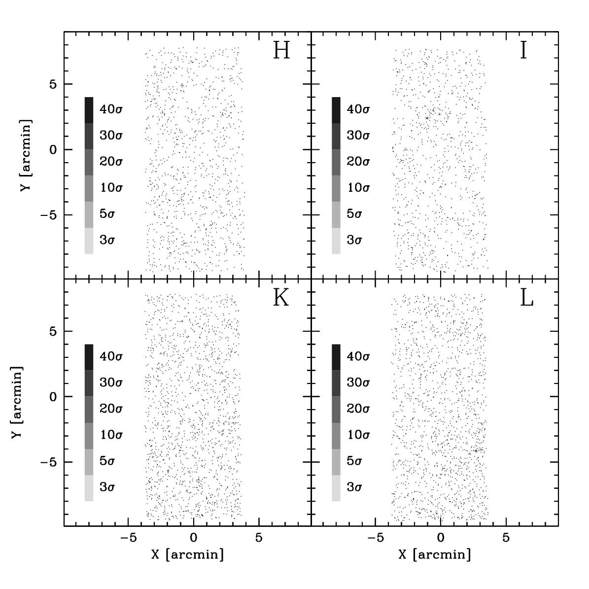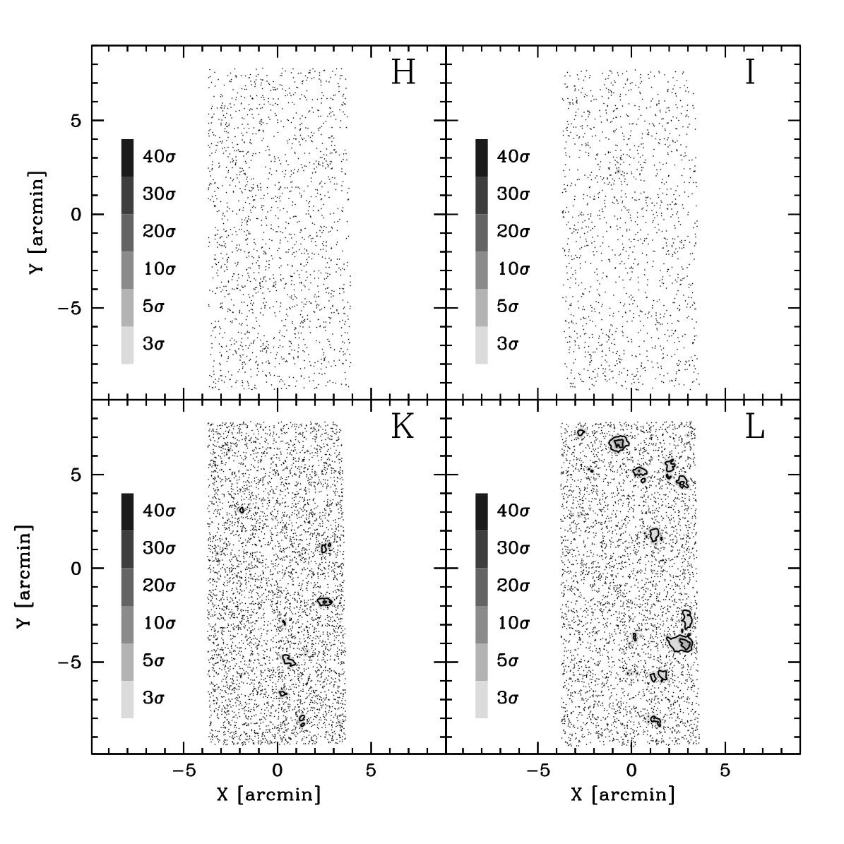 r27 maps and r25 maps for fields H, I, K, and L. The arrangement and the meaning of the symbols are the same as in Fig. 9.