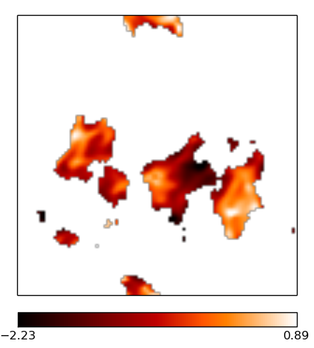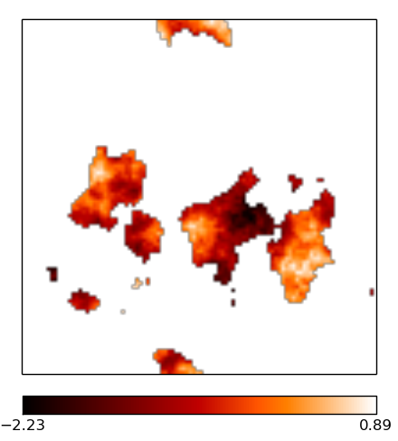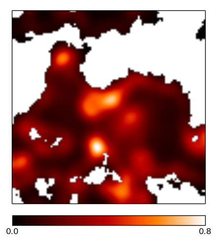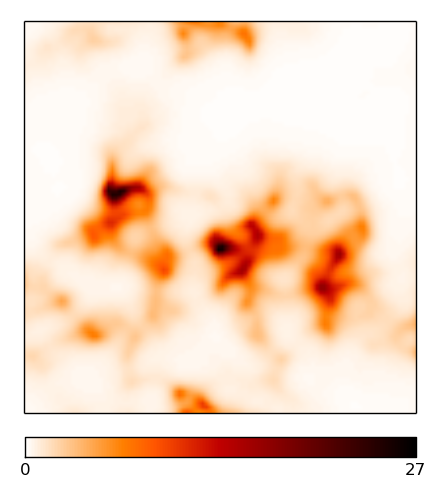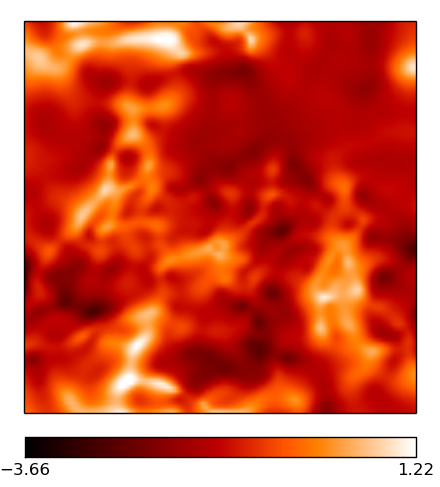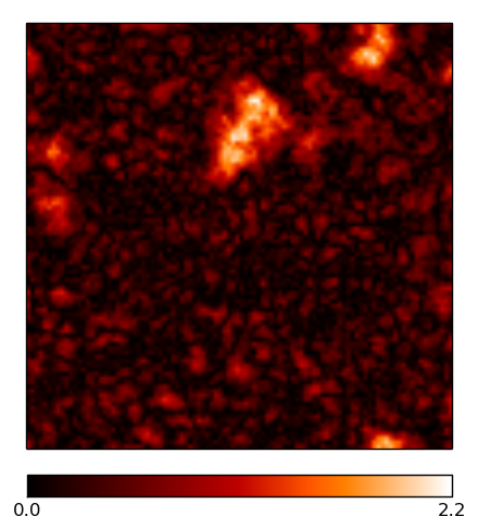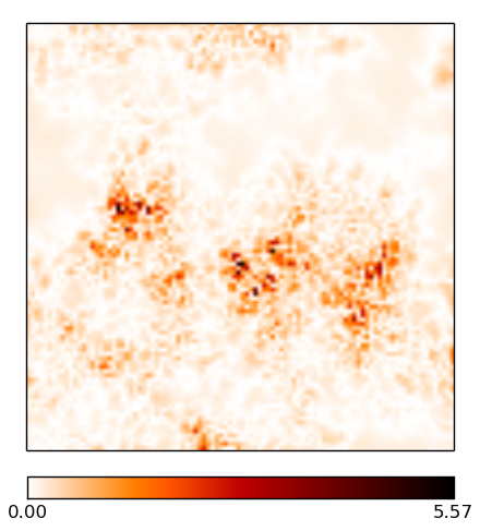 Multifrequency reconstruction of the two signal fields es and α, observed with a sparse uv-coverage from a VLA-A-configuration. The images are 1002 pixels large, the pixel size corresponds to roughly 0.1 arcsec. The brightness units are in Jy/px. The ridge-like structures in the difference maps simply stem from taking the absolute value and mark zero-crossings between positive and negative errors.