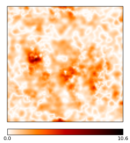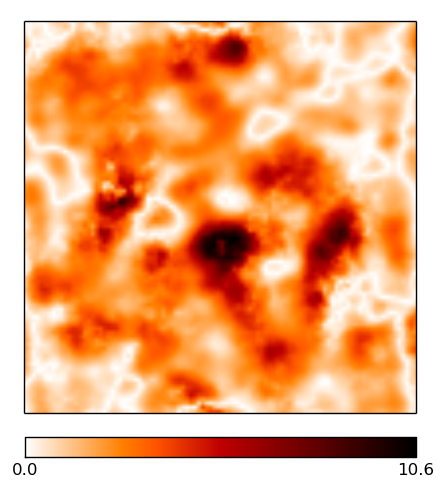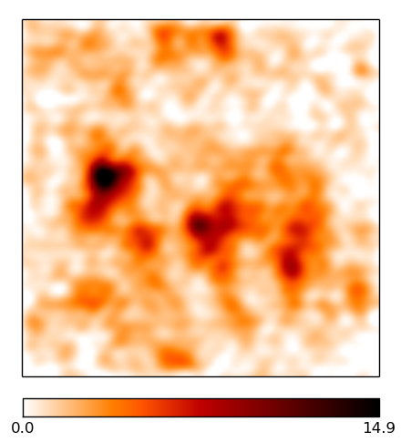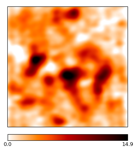 Comparison of resolve with MS-CLEAN for the simulated low-noise observation of Sect. 3.1. The images are 1002 pixels large, the pixel size corresponds to roughly 0.2 arcsec. The brightness units are in Jy/px. The ridge-like structures simply stem from taking the absolute value and mark zero-crossings between positive and negative errors. From first to last row: resolve, MS-CLEAN with natural weighting, MS-CLEAN with uniform weighting.