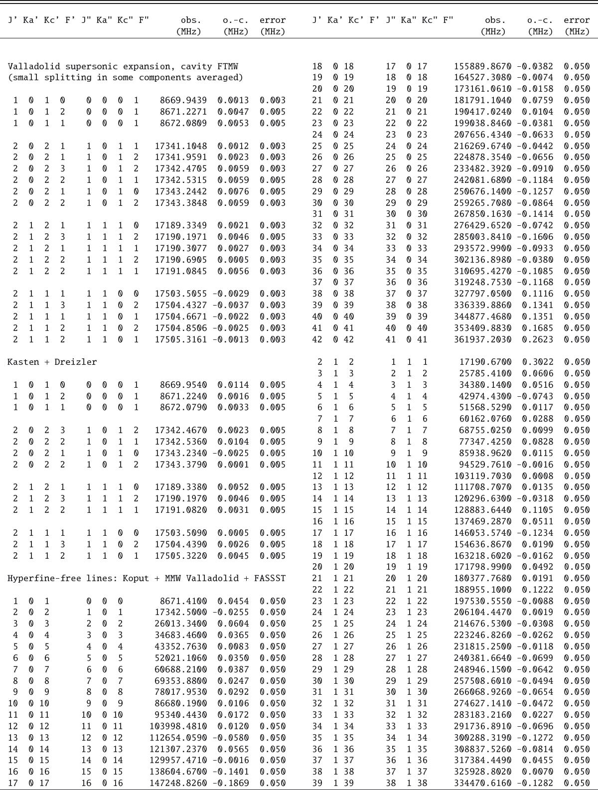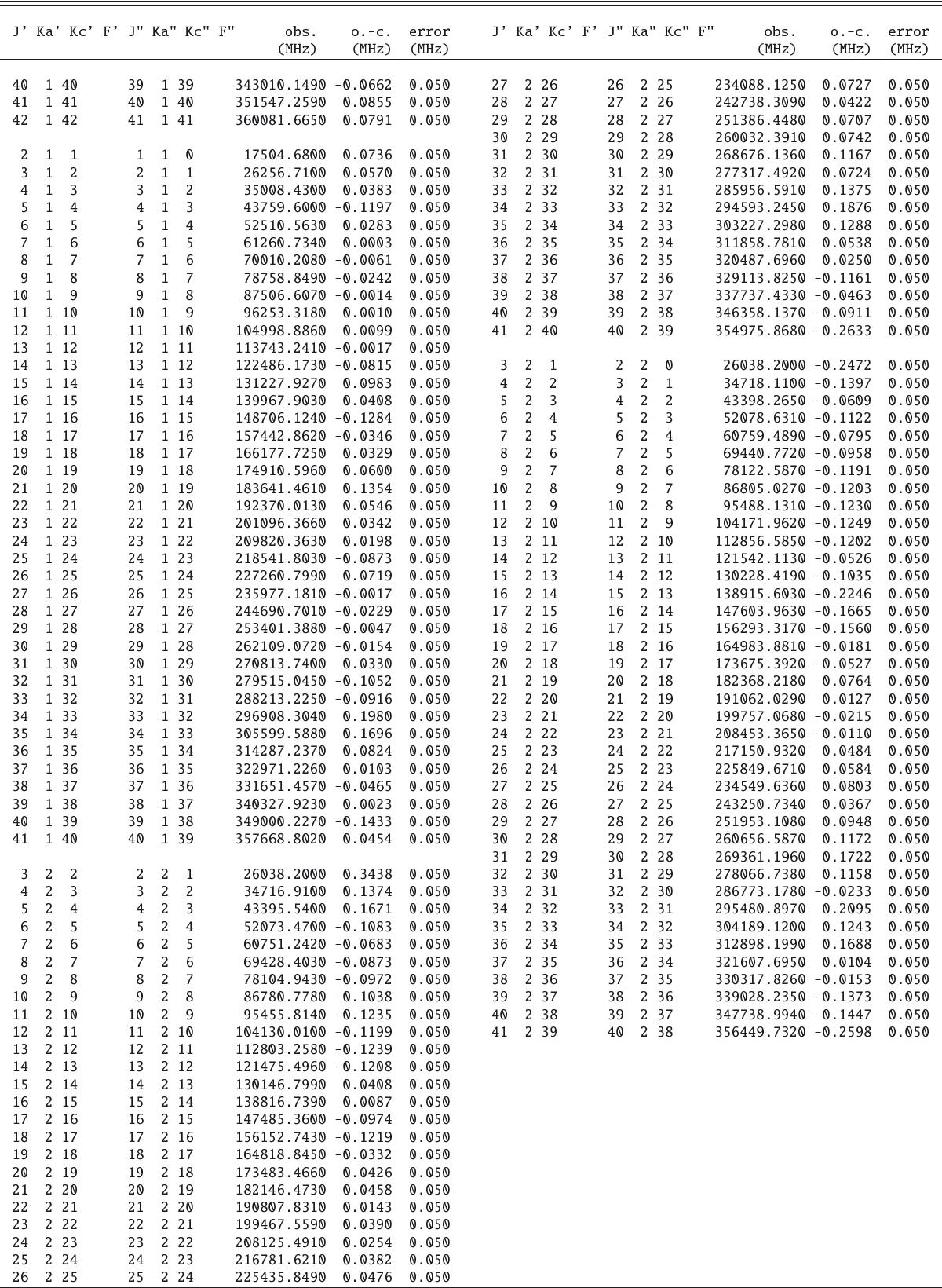 Results of fitting the spectroscopic constants of Table A.2 for CH3NCO ground state (m = 0).