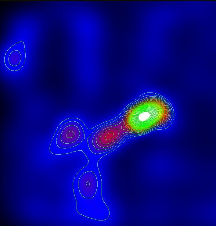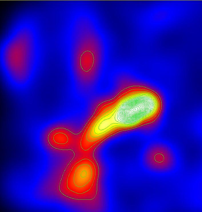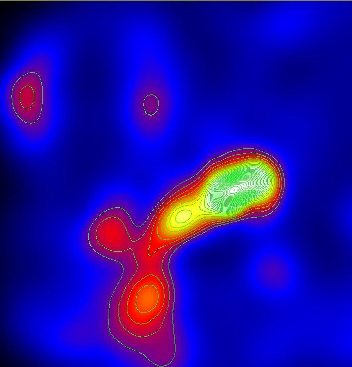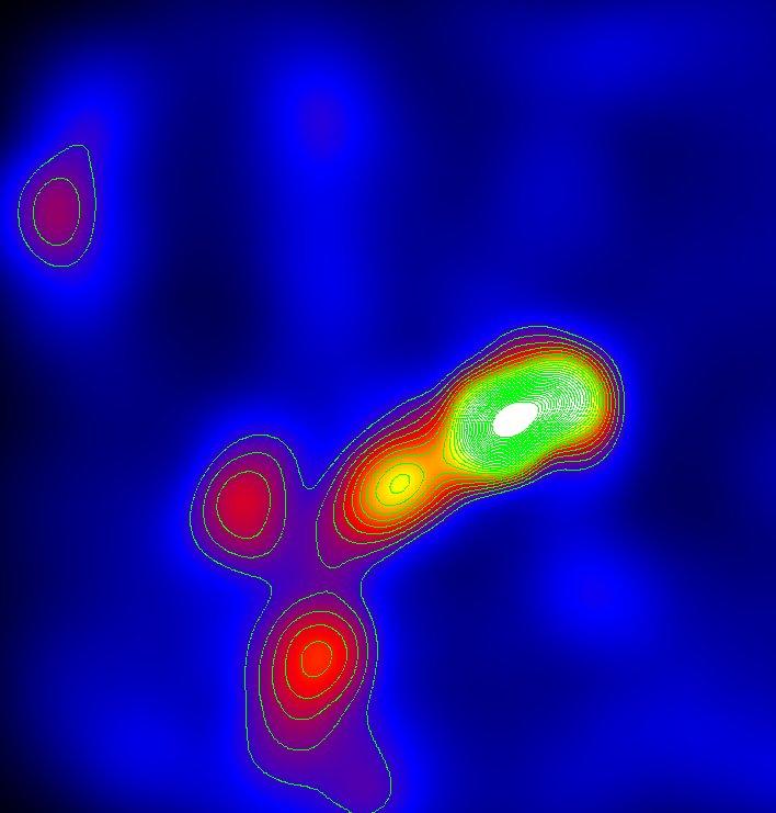 Density maps obtained for different heights of the red sequence V − I = −0.0436 × I + b (see Sect. 2.2). From top to bottom: b = 2.50, 2.75, 3.00, and 3.25. Galaxies within ±0.3 mag from the red sequence are selected. The dynamic range is the same in all the figures, but the contour levels are estimated for each image as described in Sect. 2.2.