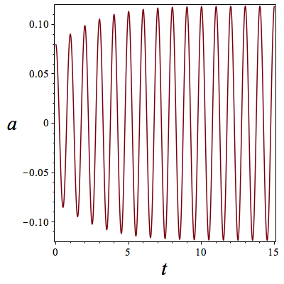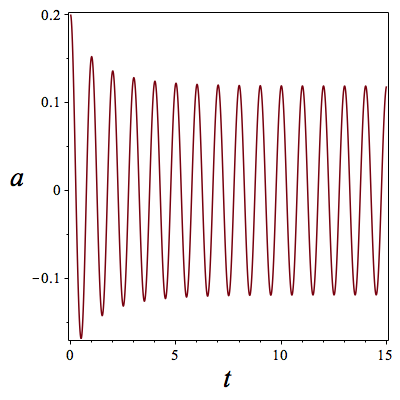 Self-oscillatory solutions of the Rayleigh equation for the initial amplitude that is smaller (left) and larger (right) than the limit cycle amplitude. The time is shown in the units of oscillation periods, 2π/CK. The units of the vertical axis are arbitrary.