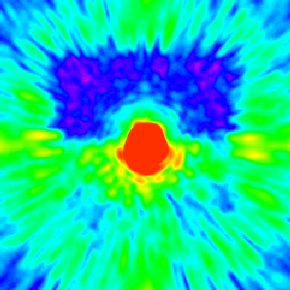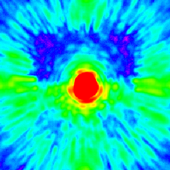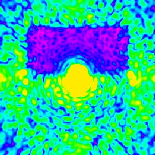 Laboratory DZPM+SCC images in broadbands: Δλ = 30 nm (top left), 200 nm (top right), 250 nm (bottom left), and 300 nm (bottom right); same spatial scale and same colorbar as Fig. 12.