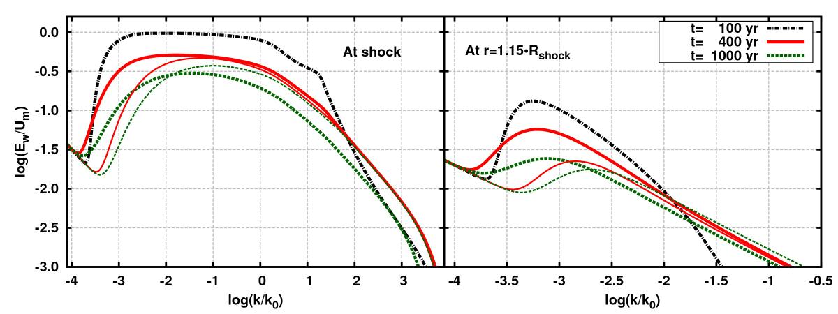 Same as Fig. 2 but for an SNR expanding into a wind zone.