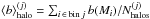 Notes. The high level of shot noise prevents a reliable measurement of bias from clustering in the simulation, therefore we estimated it by averaging over the halo model bias, b(Mi), for the halos in each bin j, i.e., .