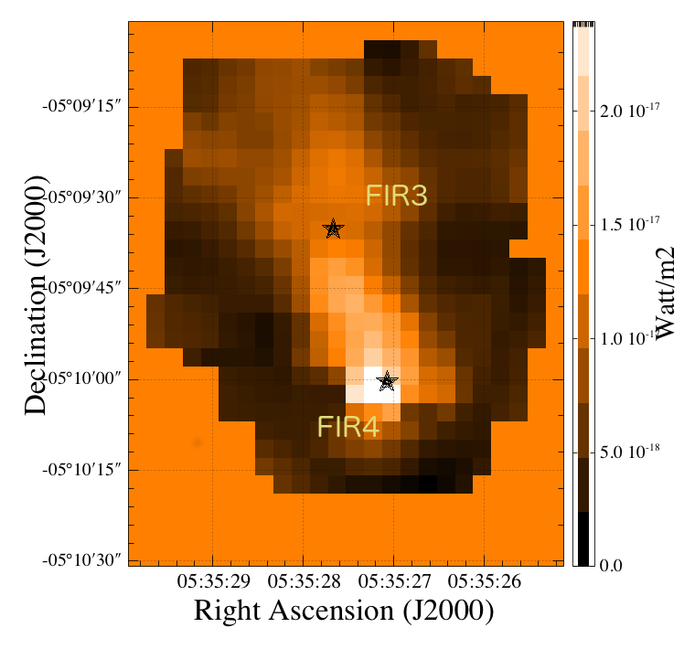 Left: [O I] 145 μm line map and right: [O I] 63/[O I] 145 line ratio map, both after the subtraction of the extended component.