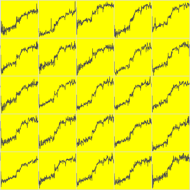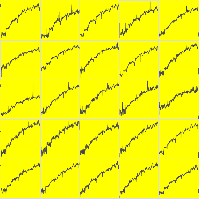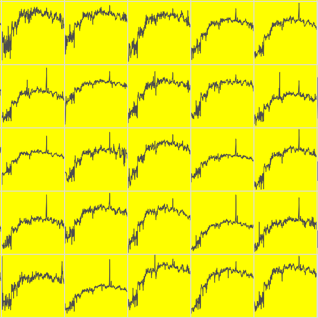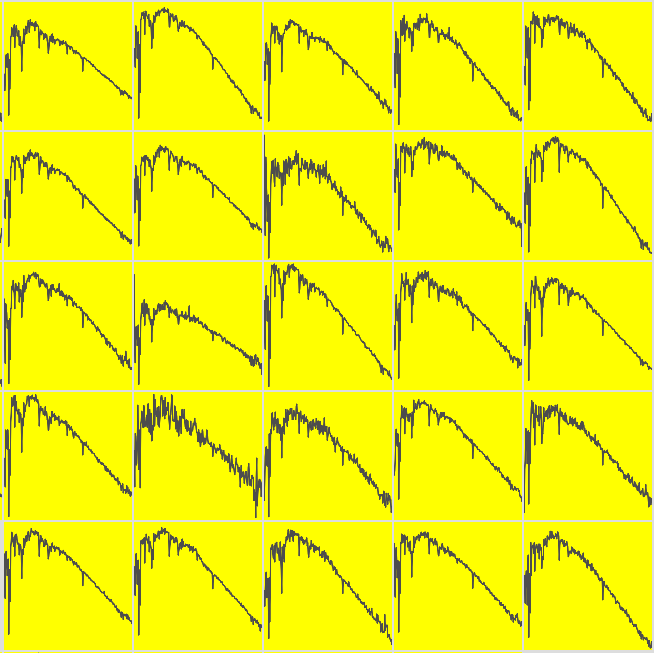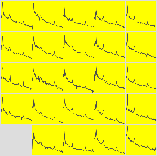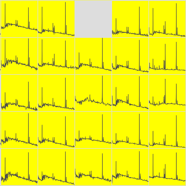Six cutouts from different parts of the icon map, each five by five pixels in size.