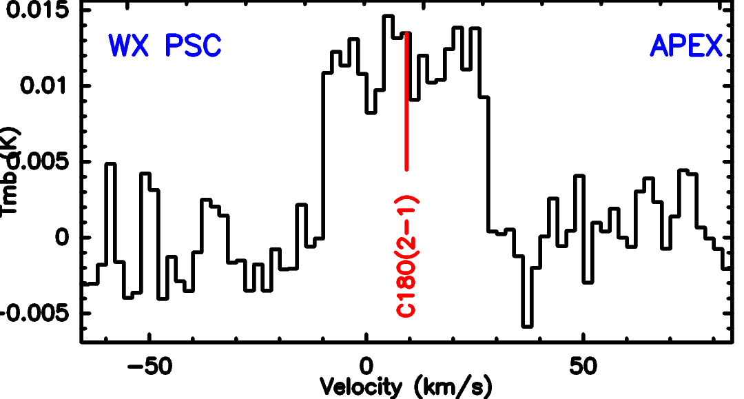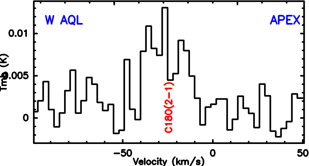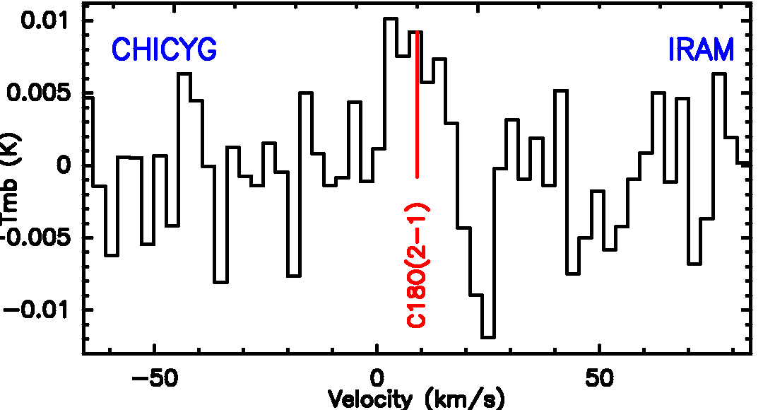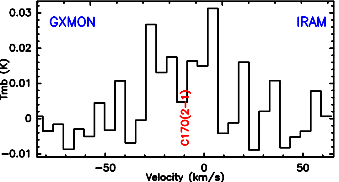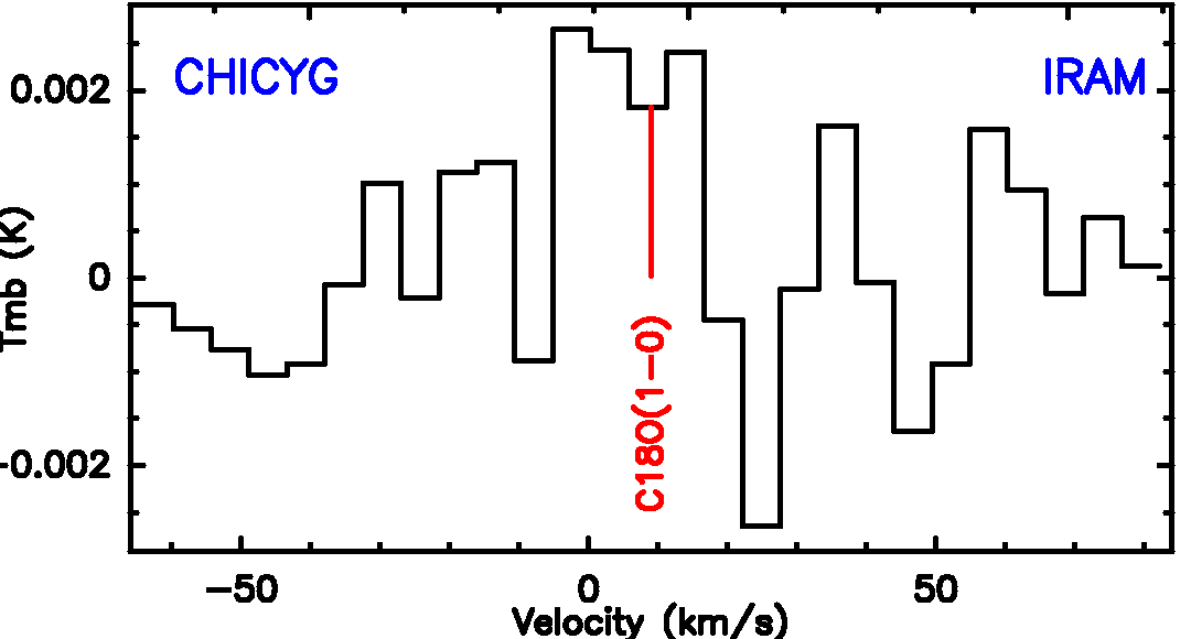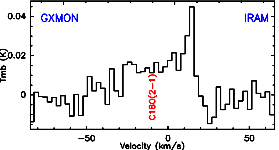CO isotopologue line detections, plotted in main-beam-temperature scale Tmb.