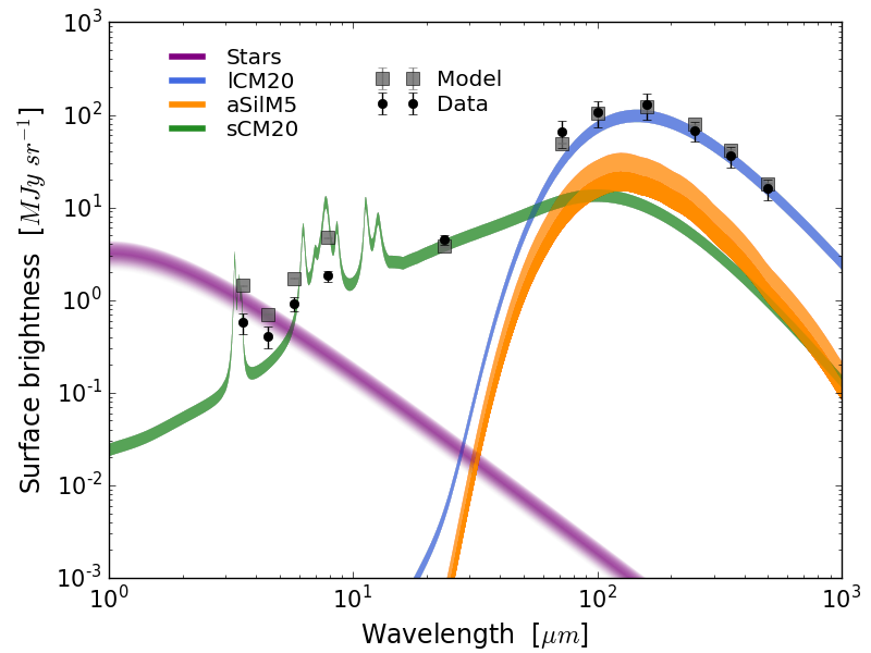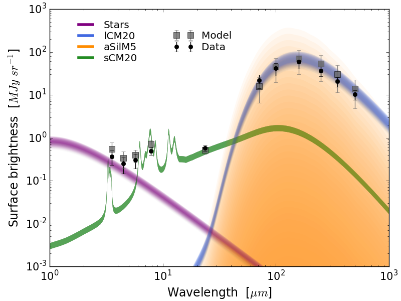 Visualization of the unconstrained (top) and constrained (bottom) silicate fit. In the top panel, the different transparency surfaces show the possible range for the final silicate value, that is, very broad and uncertain. On bottom panel, the same technique is used to draw a constrained fit.