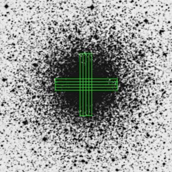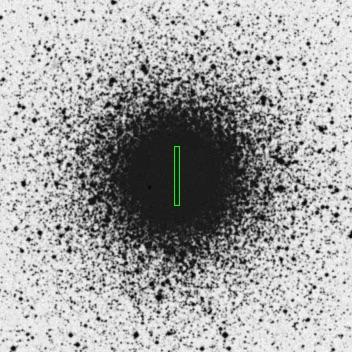 Digitized Sky Survey images of the globular clusters observed in this work. The regions covered by our drift-scan observations are indicated. The size of each panel is 10′ × 10′.