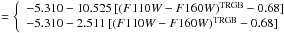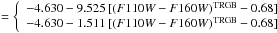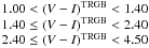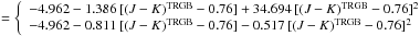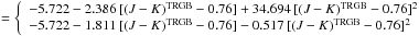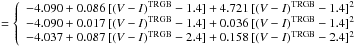 Analytic fits to our reference calibrations of the RGB-tip magnitude-colour relations.