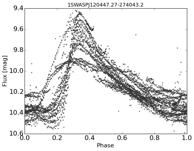 Yearly light curves of 1SWASPJ120447.27-274043.2 from 2006 to 2012 showing how the amplitude of the light curve decreased from 2006 to 2008 and increased again to 2010.