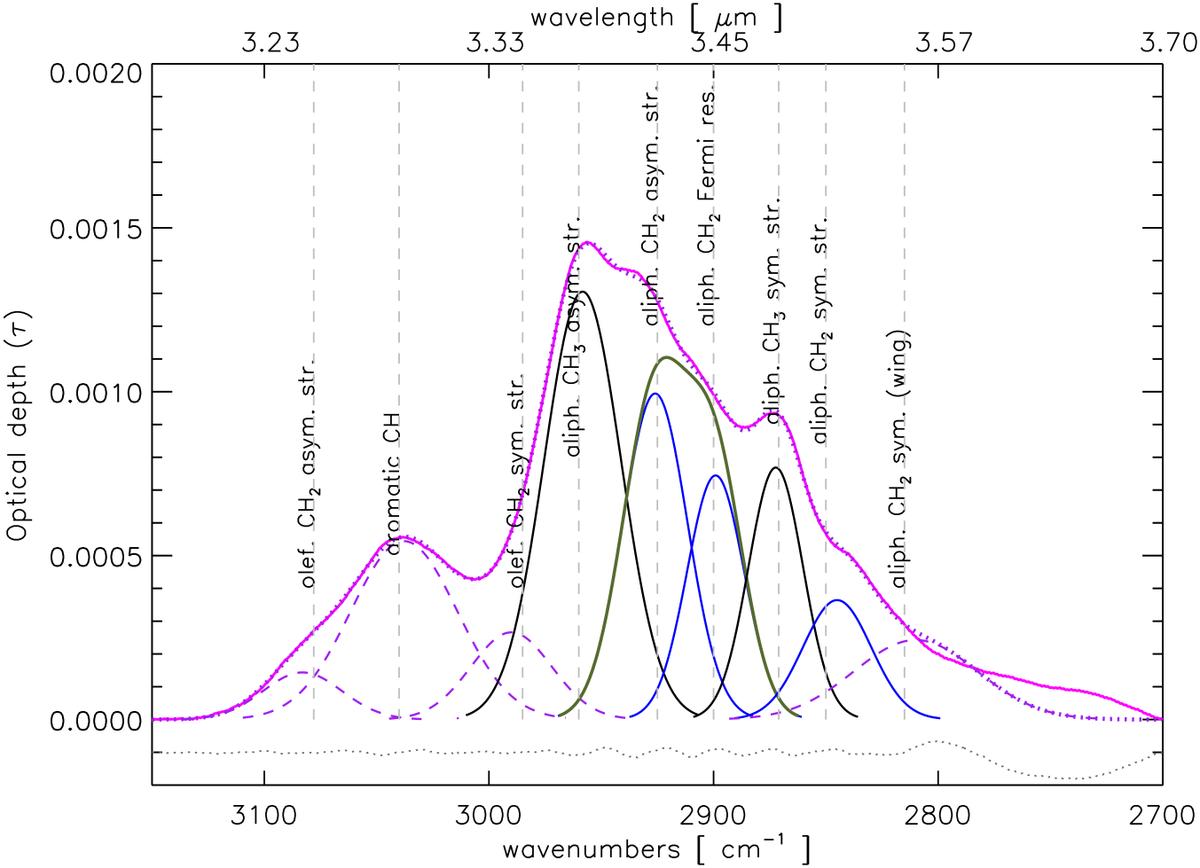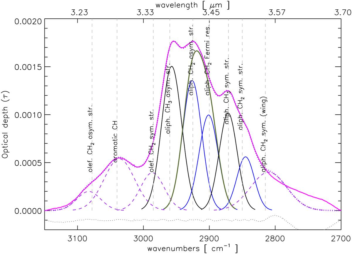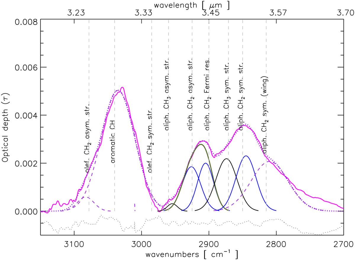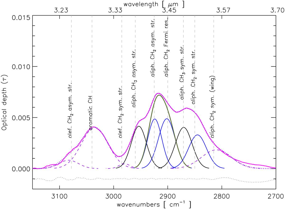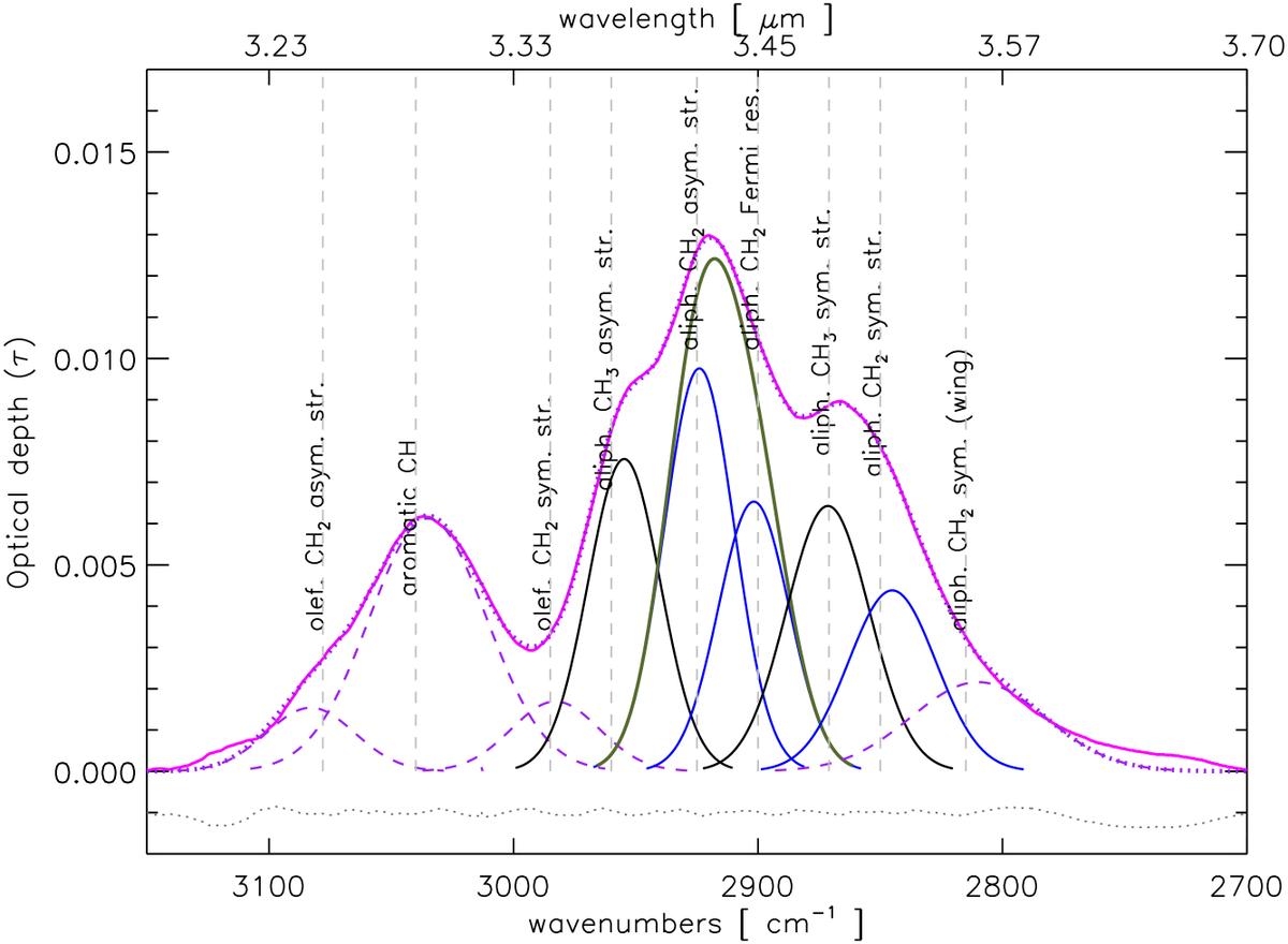 UV-VUV and mid-infrared spectral deconvolution for soot samples prepared with a C/O = 1 combustion flame, retrieved at a HAB of a) 18 mm to o) 39 mm.