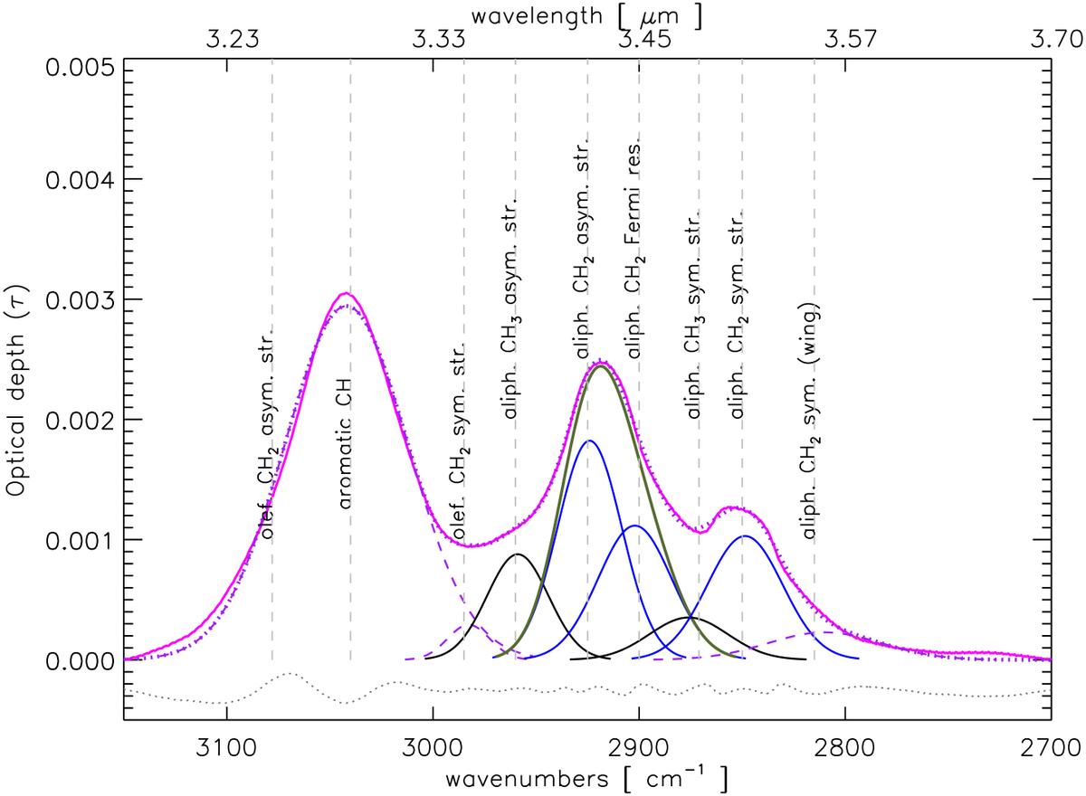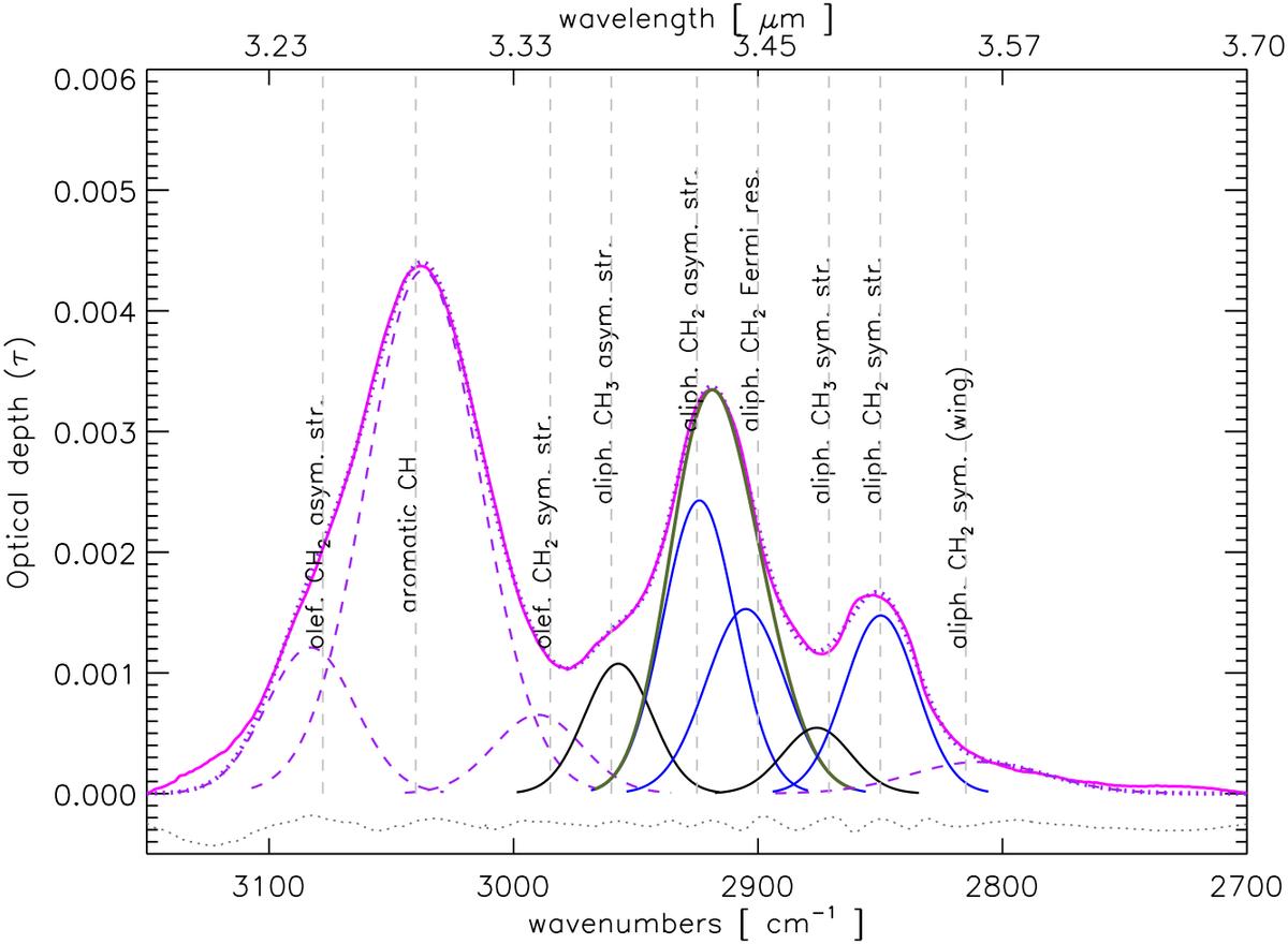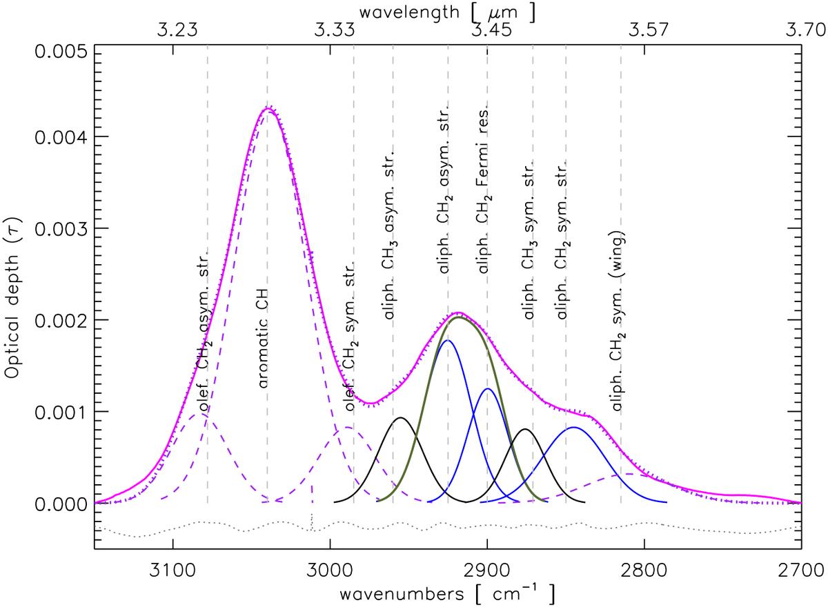 UV-VUV and mid-infrared spectral deconvolution for soot samples prepared with a C/O = 1.3 combustion flame, retrieved at a HAB of a) 25 mm to l) 39 mm.