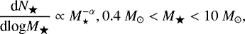 The dense cores in molecular clouds are birthplaces of stars (Alves et al. 2007; Lada et al. 2008; André et al. 2014; Hony et al. 2015). There is intense debate in the literature on whether the core mass function (CMF) and the initial mass function (IMF) of the newly formed stars possess the same underlying mass distribution. A few studies have suggested that this might be the case in a number of low-mass star-forming regions (e.g., Alves et al. 2007; Könyves et al. 2010). For the Pipe nebula cloud, Alves et al. (2007) argued that the CMF of the cloud is similar to the IMF of the Trapezium cluster (Muench et al. 2002), with an offset that is suggestive of a core-to-star efficiency, ϵ, of ≈ 0.3. Recent CMF determinations challenge this picture. Motte et al. (2018) showed that the CMF of dense cores in the W43 massive star-forming region is much shallower than the Galactic field IMF. Furthermore, a number of recent studies have pointed to significant cluster-to-cluster variations in the parameters that characterize the shape of theIMF in young Galactic and extragalactic clusters (Dib 2014; Weisz et al. 2015; Dib et al. 2017; Schneider et al. 2018). From a theoretical perspective, several works have discussed the time-dependent nature of the CMF and how its shape can be affected by ongoing accretion onto prestellar cores (e.g., Dib et al. 2010) and in closely packed systems by core coalescence (Shadmehri 2004; Dib et al. 2007a).