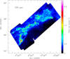 The Herschel data include PACS 70 and 160 μm (Poglitsch et al. 2010) and SPIRE 250, 350, and 500 μm (Griffin et al. 2010) imaging for the CMC (Harvey et al. 2013)1. We used the Harvey et al. (2013) version instead of the current HSA pipeline products, see Harvey et al. (2013), to determine the details in observations and data reduction processes. We focused on a region of the CMC that covers about 18 square degrees. An image at the Herschel 500 μm band for this region is shown in Fig. 1. The parallel-mode observations with a fast scan speed 60″s −1 were made with two PACS bands and three SPIRE bands. The beam sizes of the PACS at 70 and 160 μm are 8.4″ and 13.5″, respectively. The beam sizes of the SPIRE at 250, 350, and 500 μm are 18.2″, 24.9″, and 36.3″, respectively.