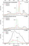 Vice versa, Res #1, Res #2, Res #3 and Res #5 exhibit a multi-picked band centred at about 2200 cm−1. The vertical dotted lines in Fig. 4 stress five components clearly recognizable at least for Res #1 Res #2 and Res #5: two of these components (2243 and 2216 cm−1) are commonly assigned to nitriles (–C≡N) while the remaining three (2192, 2138 and 2103 cm−1) to isonitriles (–N≡C) (Mutsukura & Akita 1999; Imanaka et al. 2004).