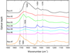 Figure 2 shows the in situ transmission infrared spectra in optical depth scale of the seven organic residues in the spectral region 4000–1000 cm−1. Each spectrum has been collected at room temperature the day after the ion irradiation of the corresponding icy mixture. In situ measurements performed in the ultra-high vacuum condition prevent any contamination of the residues.
