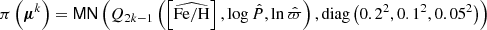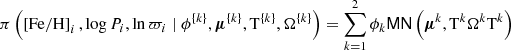 | π(Mi | b,c,k,w,log Pi, [Fe/H]i = N(b + c · log Pi + k · [Fe/H]i, w | |