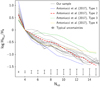 Fig. B.1. Comparison between our ROTFIT estimates of RV and values reported by Schneider et al. (2012, red symbols), Donaldson et al. (2016, black symbols), and Gagné et al. (2017, blue symbols), with respective uncertainties. The equality line is traced in gray to guide the eye. |