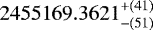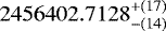 2454775.3372 ± (2) | 2456029.59204 ± (13) |