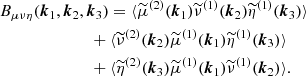 where the superscripts (2) and (1) denote the second and first-order terms respectively. But because we take Gaussian random initial conditions, the value of the three-point correlation vanishes at the lowest-order. Additionally, we can neglect products of second-order terms, as these are fourth-order terms. Equation (A.1) now becomes: