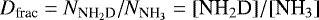 (MacLaren et al. 1988; Evans 1999): The Δvnth is the non-thermal line width for NH2D main line. Dfrac: deuterium fractionation is defined as
