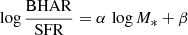 Notes. The equations we used are for log10SFR = m log10M* + q; for log10BHAR = m log10M* + q; and for the ratio