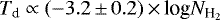 scale linearly with Mline, according to Eqs. (3) and (4). The central dust temperature Td of each filament was estimated from the dust temperature map (at 36.3″ resolution) along the filament crest. This dust temperature Td is anti-correlated with