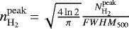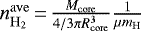 , where Mcore is the estimated core mass (Col. 7), Rcore the estimated core radius after deconvolution (Col. 5), μ = 2.8; (13) average column density, calculated is the same way as for Col. (12), but using the observed radius (Col. 6); (14) beam-averaged peak volume density at the resolution of 500 μm intensity map, derived from the peak column density (Col. 11) assuming a Gaussian spherical distribution: