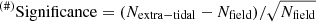 , where Nextra − tidal is number of extratidal stars around the cluster.