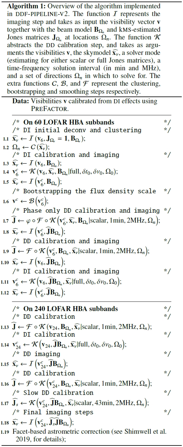As mentioned above, it is challenging to synthesize high resolution thermal noise limited images with LOFAR (van Haarlem et al. 2013). Specifically, LOFAR (i) operates at very low frequencies (ν < 250 MHz), (ii) has very large fields of view (full width at half maximum of 2–10 degrees), and (iii) combines short (~100 m) and long (~2000 km) baselines to provide sensitivity to both the compact and extended emission. Because of the presence of the ionosphere and the usage ofphased array beams, the combination of (i) and (ii) makes the calibration problem direction-dependent by nature. In Sect. 2.1, we introduce the mathematical formalism used throughout this paper, while in Sects. 2.2 and 2.3 we describe the algorithms and software used for DI and DD calibration and imaging.