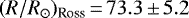 (two-Teff model; Eq. (3)), and log g, called “Rosseland” parameters, are noted with the subindex “Ross”. The parameters in the right column are related mainly (but not exclusively) to those in the left column on the same line by the adopted distance or the equations defined in Sects. 3.2 and 3.3. The parameters estimated with evolutionarymodels, noted with the subindex “evol”, correspond to two ZAMS velocity ratios. The Hipparcos parallax (π = 10.55 ± 0.56 mas; van Leeuwen 2007) was used to relate the bolometric luminosity, L, the bolometric flux, fbol, and the angular and linear sizes. See the discussion in Sect. 4.3.