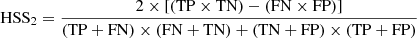 Definitions of various skill scores as the measure for the performance of classifier and their mean values for campfires.