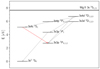 Fig. 1. Schematic term diagram of the 12-level Mg I atomic model. Red line denotes the transition in which the Mg I b lines are formed. Full lines represent the bound-bound transitions. From each bound level, we have a bound-free transition. |