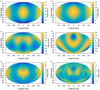 We applied our methods to all small satellites. The maps shown in Figs. A.1 to A.10 present the topography as a function of the spherical harmonics. Maps (a) represent the topography between degree 0 and 2, (b) degree 0 to 3, (c) degree 3, (d) degree 4, (e) degree 0 to 14, and (f) degree 3 to 14.