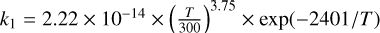 | OH + H2 = H2O + H | υ2 = k2n(OH)n(H2) | |