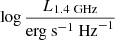 Properties of the radio sources in our sample. Column (1): Galaxy ID; (2-3) RA and Dec. coordinates; (4) Spectroscopic redshift; (5) 1.4 GHz rest-frame luminosity density; (6-7) SED-based dust luminosity and stellar mass; (8) SFR; (9) WISE color-based class; (10-11) source type and name as found in the NED.