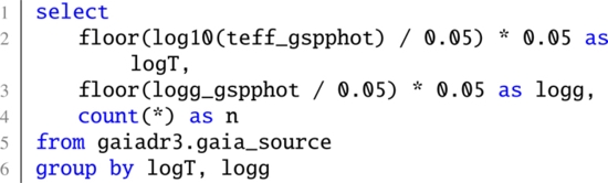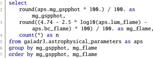 • The queries for Fig. 31, in which we used the tracer selection from TGE to select the giant stars from GSP-Phot.
