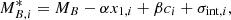 where α, β and MB are common to all SNe Ia and x1, i, ci and the intrinsic scattering σint, i are randomly drawn from distributions described below.