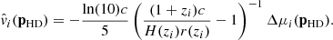 with r(z) the comoving distance. In the residuals, μmodel(z) is evaluated at z = zobs = (1 + zp)(1 + zcos)−1.