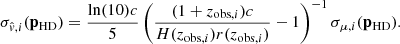 where μobs is the observed distance modulus to the SN Ia host (Eq. (8)), which includes the peculiar velocity contribution.