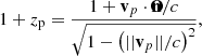The expression for zp derives from the relativistic Doppler effect due to the peculiar velocity and is given by