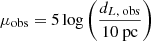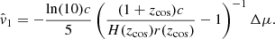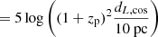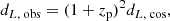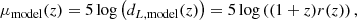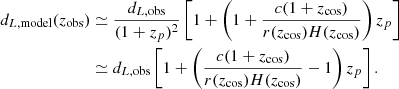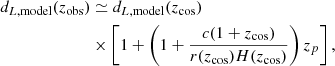 where dL, cos ≡ dL(zcos) = (1 + zcos)rcos is the cosmological luminosity distance. The observed distance modulus is then given by
