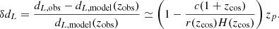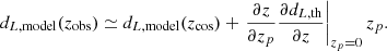The first-order Taylor’s expansion of dL, model(zobs) with respect to zp is