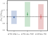 As we have seen in Appendix A.1, the derivation of these estimators make the assumption that zp is small enough compared to zcos. This statement tends to be less valid at very low redshift when zcos is of the same order of magnitude than zp. Moreover we stated in Sect. 3.1.2 that we can not have access to the cosmological redshift zcos, hence we need to evaluate our estimator using the observed redshift zobs. On Fig. A.1, we see in the upper left panel, that these approximations leads to a biased velocity estimation especially at very low redshift z < 0.02 where the bias magnitude for a velocity of v ∼ 300 km/s is above ∼5% for . Comparing the estimators, we see that neglecting the "-1" term as in